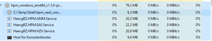 - werden existierende Systemdienste des HPM gestoppt und nach Installation gestartet