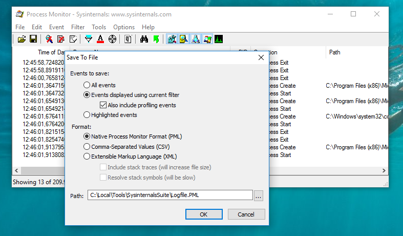 Mit dem Tool “Process Monitor” (Procmon.exe) von SysInternals (Microsoft) können diese einfach erfasst werden.